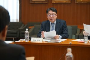 施策提言中の石森理事長(正面)と秋元克広市長(手前左)
